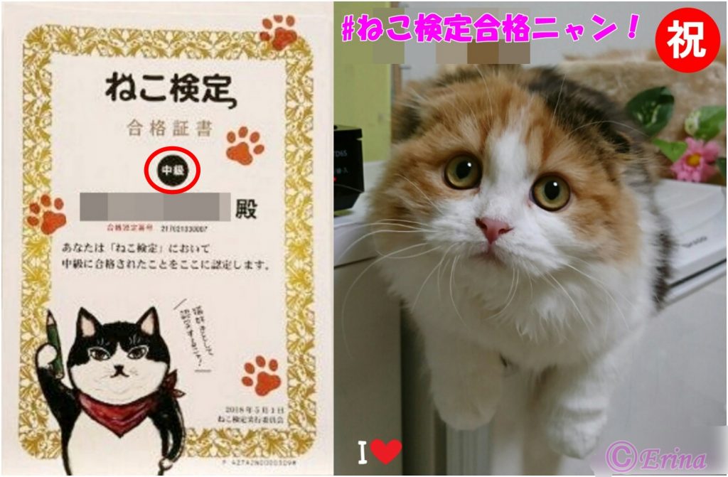 ㊗💐2018年第2回ねこ検定中級に合格しました!
